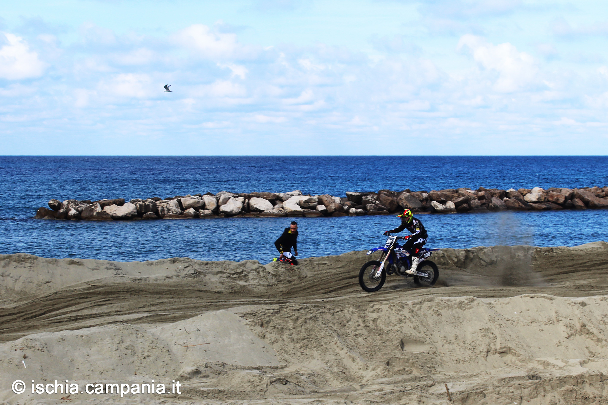 Alle discipline fin qui elencate se n’è aggiunta un’altra: il motocross. In verità i boschi isolani, in particolare la Falanga, sono sempre stati frequentati dagli appassionati locali delle due ruote che, evidentemente, in cerca di nuove emozioni, hanno pensato di trasformare in pista pure le spiagge. Ovviamente nei mesi invernali, e ovviamente soltanto quelle che si prestano per spazio e caratteristiche. Una su tutte: la Chiaia, a Forio.